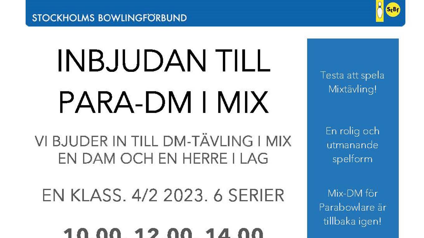 Stockholms bowlingförbund är glada att återigen kunna bjuda in till distriktsmästerskap med mixade lag (en herre och en dam) för Parabowlare.
