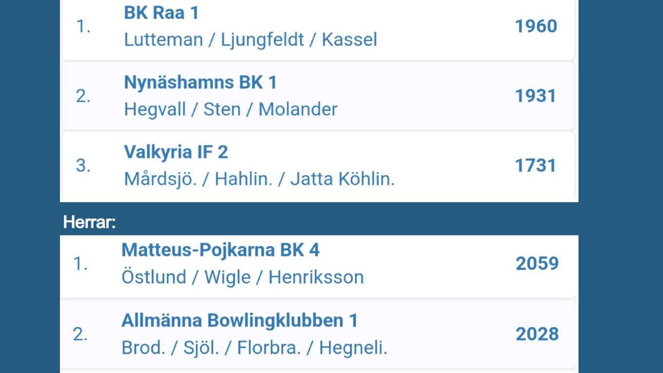 Därmed har vi korat medaljörerna i B-klasserna och vi säger grattis till Matteus-Pojkarna BK som vann guldet i herrklassen och till BK Raa som vann guld i damklassen. Vi har nu också fått fram vilka lag som går till final i A-klasserna: